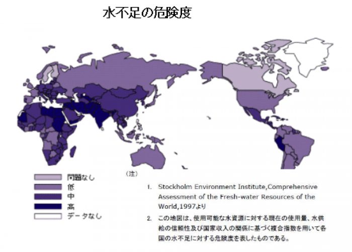 人口急増と社会発展(安全な飲料水、トイレなどの普及)で多くの国が水不足になっています。